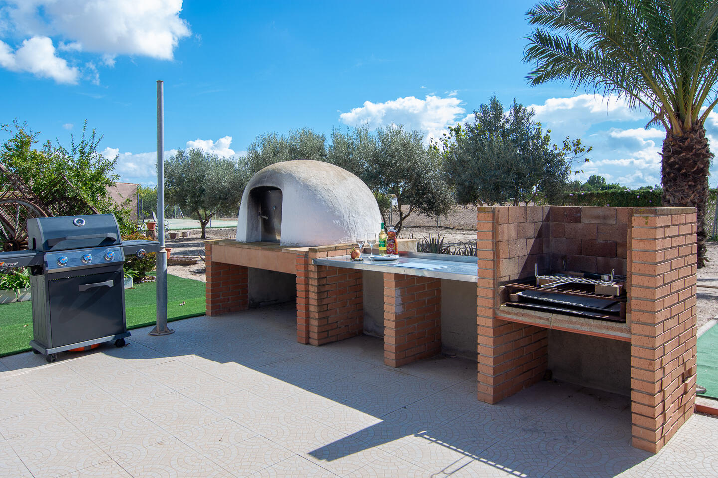 - Aangrenzend aan de veranda een terras met aparte BBQ plaats en pizza-oven